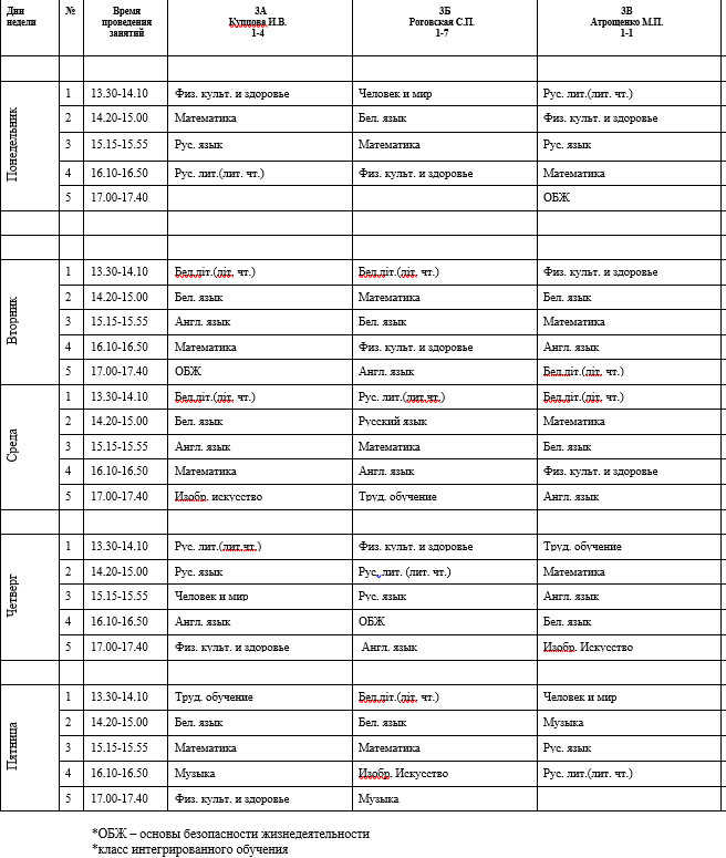 - Расписание учебных занятий учащихся 3-х классов